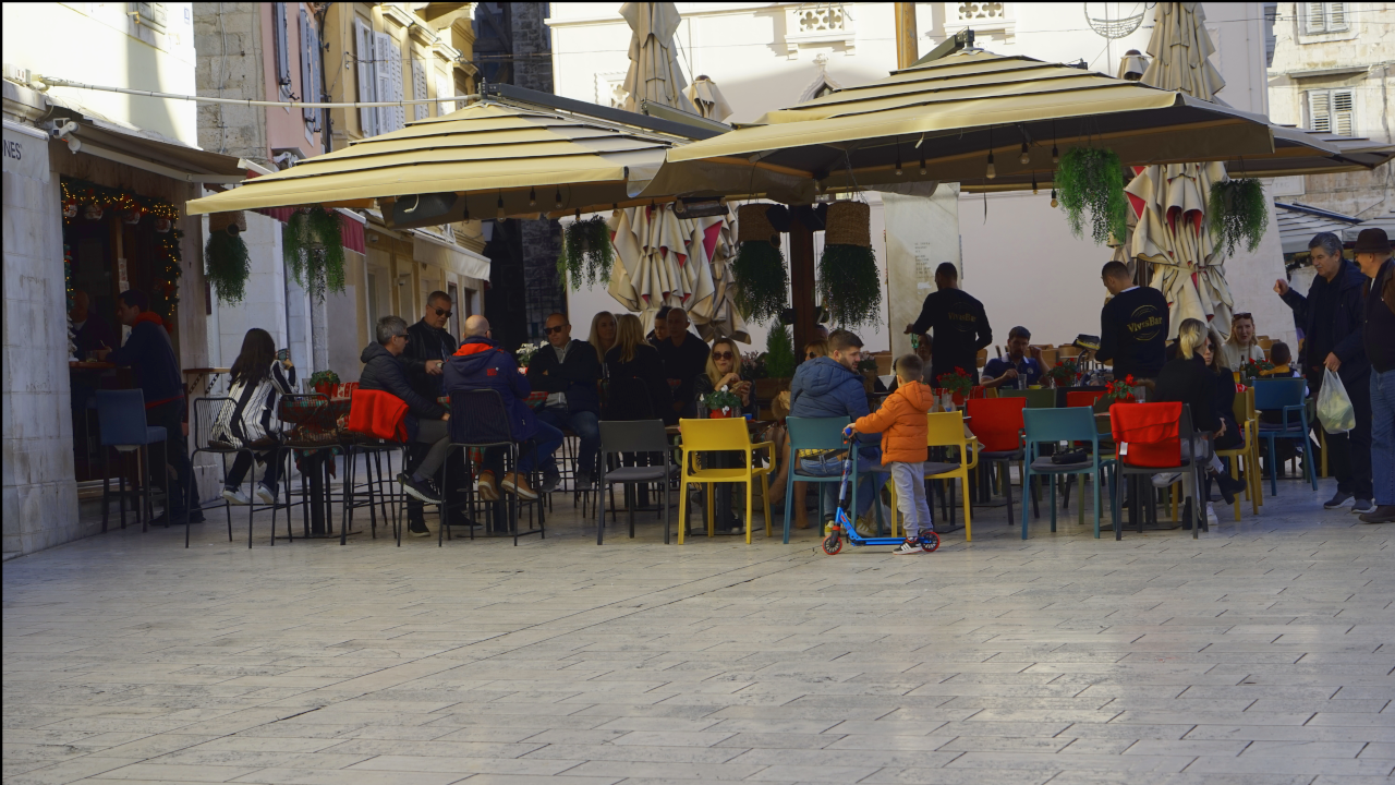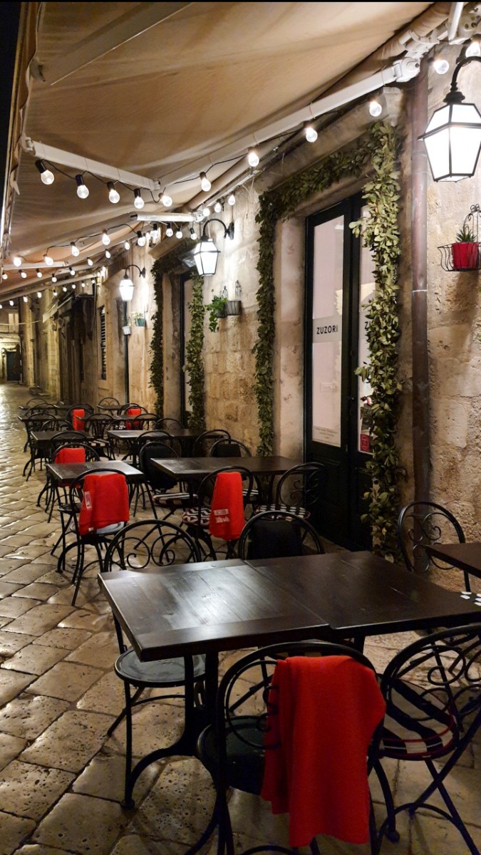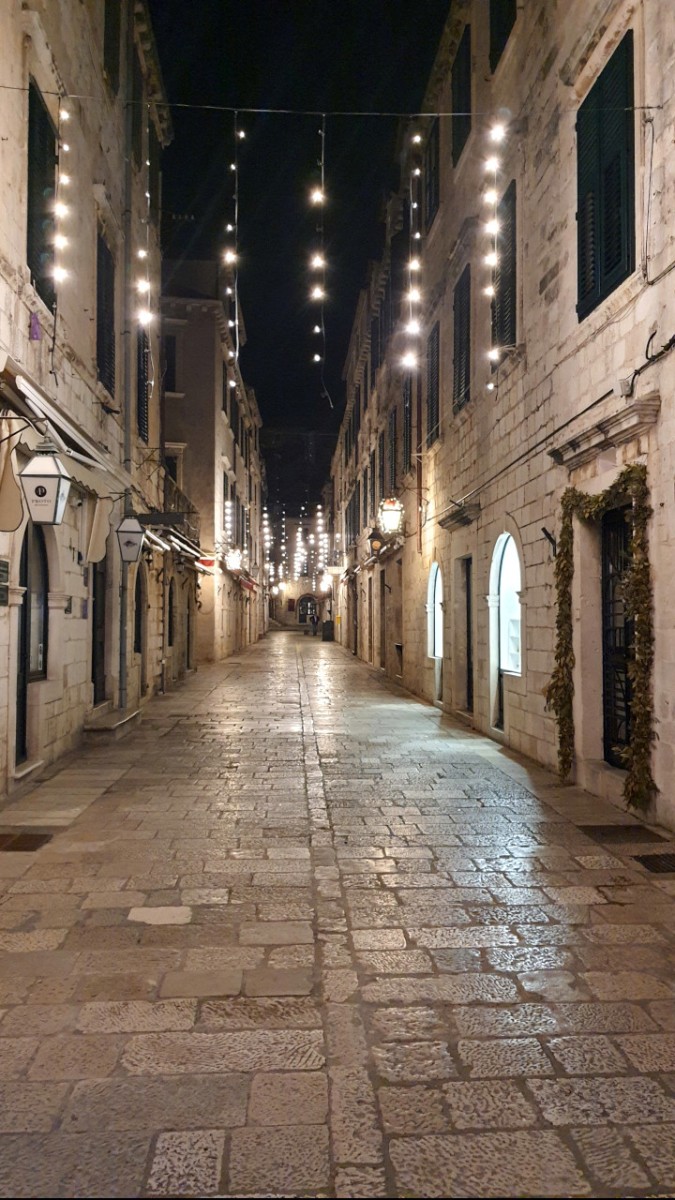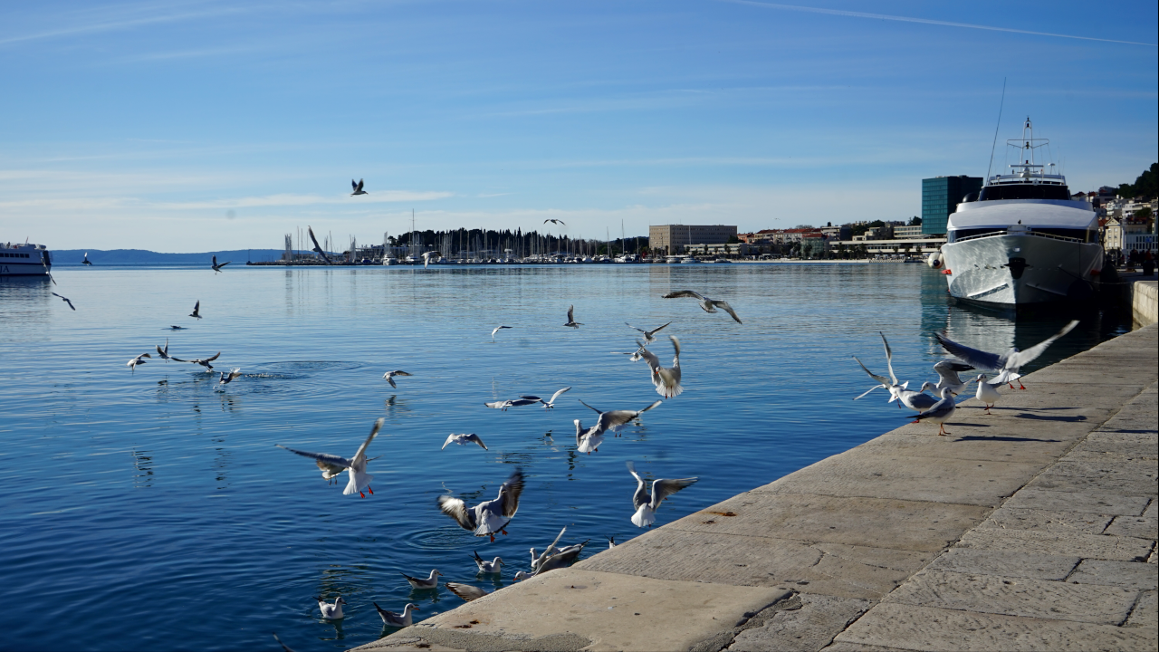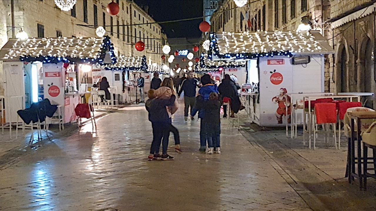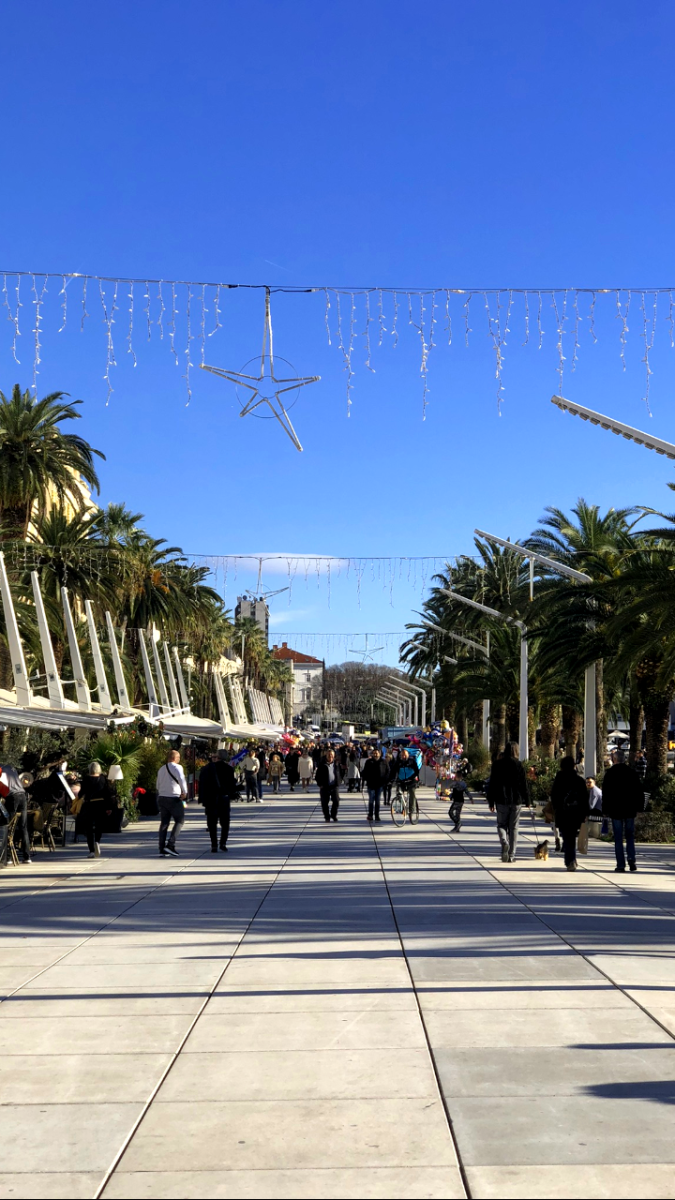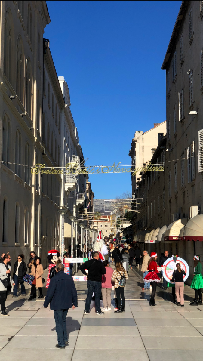 Kolejnym miastem na naszym punkcie był Split. Pogoda była słoneczna, wyśmienita do chodzenia po ciasnych ale pustych uliczkach. W porównaniu do sezonu letniego czuliśmy się jakbyśmy byli tam sami. Na głównym deptaku tuż przy porcie rozstawione były budki bożonarodzeniowe gdzie można było się napić grzanego wina i coś przekąsić. Przy takiej pogodzie ciężko było uwierzyć, że to okres świąteczny. Zwiedzanie Splitu postanowiliśmy zakończyć pobytem w restauracji polecanej przez Makłowicza (teraz już wiemy, że to właśnie restauracje zniszczyły Nasze plany na wyjazd niskobudżetowy 😊 ).