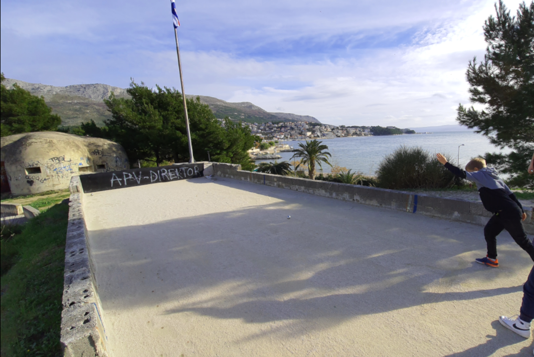 Zwiedzanie rozpoczęliśmy od miasteczka przy Naszym kempingu Stobreč. Nie zapuszczaliśmy się specjalnie daleko. Zwiedzaliśmy raczej okolice. Jak to zwykle bywa w Chorwacji wszędzie można znaleźć piękne widoki, ale nie jest to punkt na mapie, który koniecznie trzeba odwiedzić. Jest bardzo mała ilość chodników do spacerowania czy biegania co utrudnia wyjścia z dzieciakami. Nie ma też ścieżek rowerowych dlatego też Nasze rowery nie zostały rozpakowane. Bez wątpienia miasteczko ma swój urok oraz przepiękne widoki. Udało Nam się znaleźć miejsce do grania w bule 😊 w związku z tym postanowiliśmy to wykorzystać.