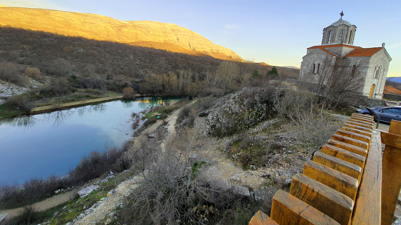 Atrakcją, do której udaliśmy się po Parku Narodowym Krka było zobaczenie Źródła Rzeki Cetina. Miejsce przepiękne. Samochodem dojeżdżasz do samego źródła gdzie jest mały parking oraz zbudowany pomost, abyś mógł podziwiać je z góry. Obok parkingu znajduję się również cerkiew z 1939 roku.